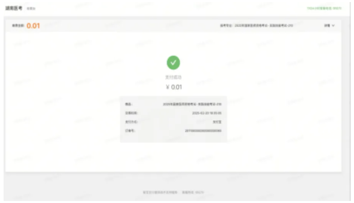 6.支付成功,缴费页面会显示“支付成功”,则表示已完成考试缴费。后续其它事宜请及时关注湖南省卫生健康委医学考试中心和长沙卫健微信公众号、湖南医考网(www.cndoctor.cn)。