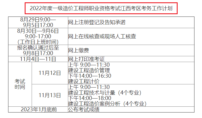 另外,根据这一通知,2022年江西省一级造价工程师考试在11月12日-13日举行。本站编辑特整理了一造考前注意事项,供大家参考: