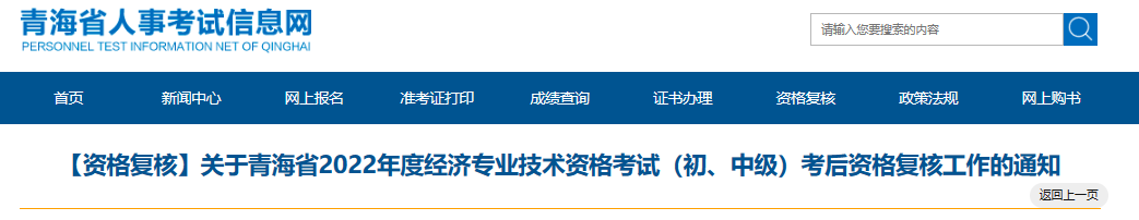 关于青海省2022年度经济专业技术资格考试(初、中级)考后资格复核工作的通知