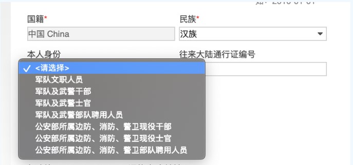答:在“本人身份”下拉列表中选择自己相应的身份即可,注意现役与聘用人员的区别。如下图:
