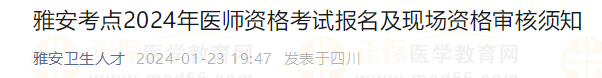 四川雅安考点2024年医师资格考试报名及现场资格审核须知!有关四川雅安考点2024医师资格考试安排、报名、审核以及考点咨询电话等。小编整理如下,请相关考生及时查看,做好报名准备!