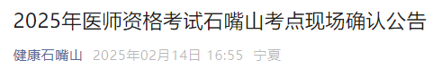 根据《宁夏回族自治区2025年医师资格考试公告》规定,现将2025年医师资格考试石嘴山考点现场确认相关事宜公告如下: