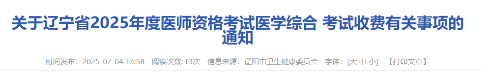 官方速报!辽宁省2025年医师资格综合笔试缴费入口已开通!请相关考生及时查看官方通知,按时完成笔试缴费!