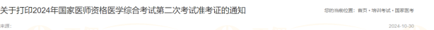 山东淄博考点2024年医师资格医学综合“一年两试”准考证打印通知,请考生登录国家医学考试网于11月2日至8日自行打印,小编为大家整理官方通知如下: