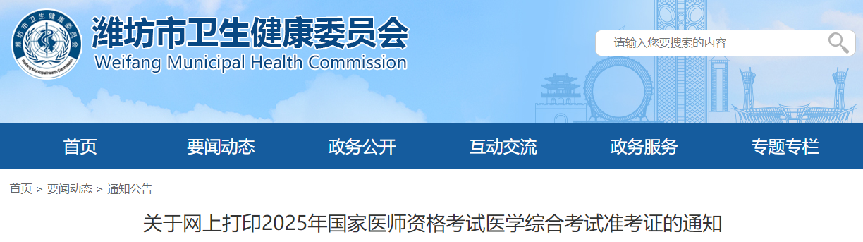 山东潍坊2025年医师资格综合笔试考生注意:准考证8月15日起打印!以下为潍坊考点官方发布的考前提醒,请相关考生及时查看,做好应试准备!