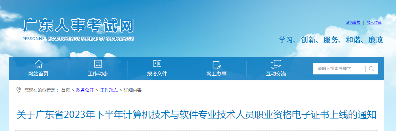 关于广东省2023年下半年计算机技术与软件专业技术人员职业资格电子证书上线的通知