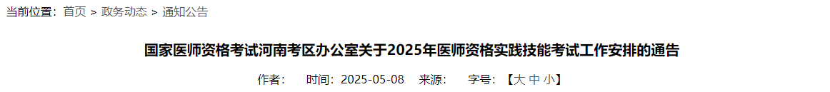根据国家医师资格考试工作安排,2025年医师资格实践技能考试定于2025年6月14日至6月25日进行。结合我省实际,现将有关安排通告如下: