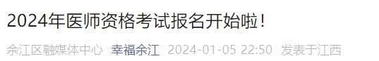 江西余江转发江西省卫生健康委员会公告2024年第1号,24年医师报名即将开始!通知内容包含报名审核时间安排、审核资料详细要求以及考点咨询电话。小编整理如下,请相关考生及时查看,做好报名准备!