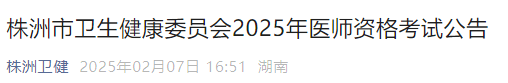 (一)报名参加2025年医师资格考试的考生,均须关注“湖南省卫生健康委医学考试中心”微信公众号以及“株洲卫健”微信公众号,及时获取考试相关信息。