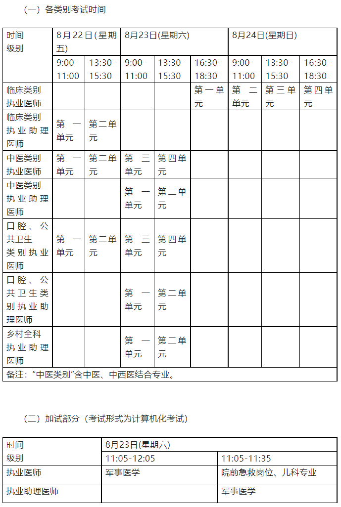 医学综合考试“一年两试”考试时间如下:
