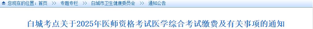 1.2025年医师资格实践技能考试通过结果显示为“技能通过”和2024年度实践技能考试通过的考生,请于7月9日-7月11日到白城市卫生监督所(白城市辽北路139号)缴纳医学综合考试报名费,逾期未缴费的考生,视为自动放弃考试,不予补缴费。