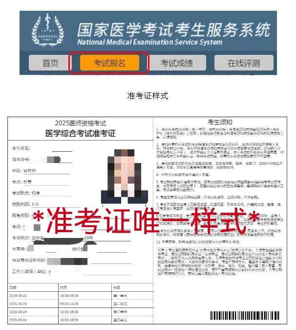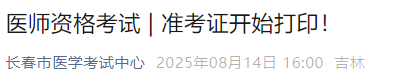 速报!吉林长春2025年医师资格综合笔试准考证打印入口开通!请相关考生及时登录国家医学考试网打印,提前确认考场安排以及考生须知,做好应试准备!