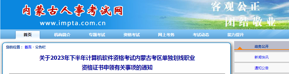 内蒙古人事考试院发布了《关于2023年下半年计算机软件资格考试内蒙古考区单独划线职业资格证书申领有关事项的通知》,2023下半年软考考试内蒙古考区单独划线资格证书仅在单独划线地区有效,请相关人员在12月日-21日完成申报。