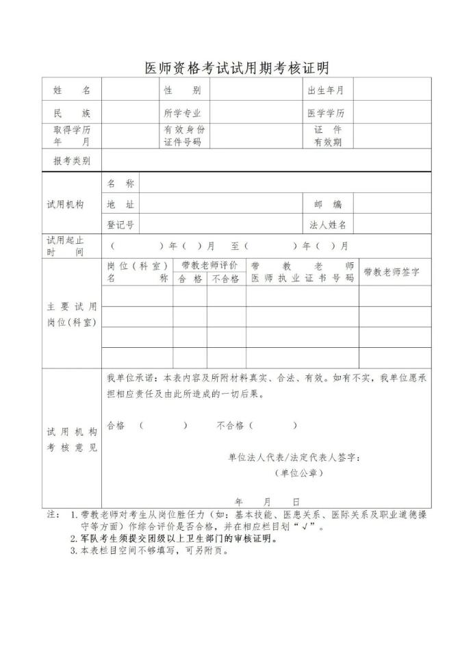 2.《医师资格考试试用期考核证明》