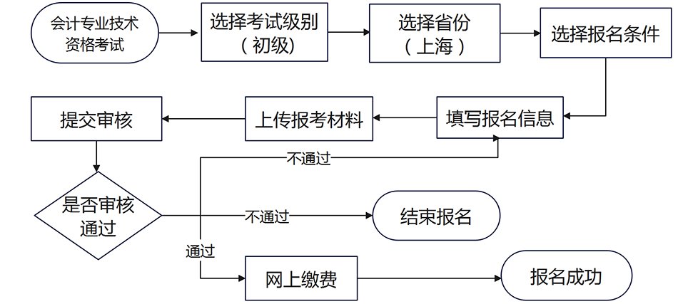初级资格实行“在线填写报名信息-上传报考材料-在线审核资格”,即报考人员选择报名条件后,在线填写报名信息,上传报考材料,提交在线人工审核。