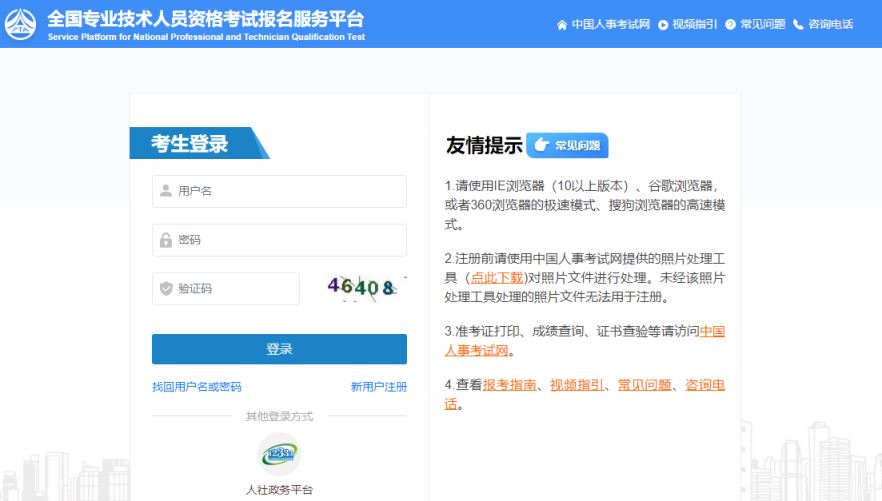 1. 新注册的报考人员按要求填写用户信息,上传电子照片;已注册的报考人员直接登录报名系统,补充完善个人信息。