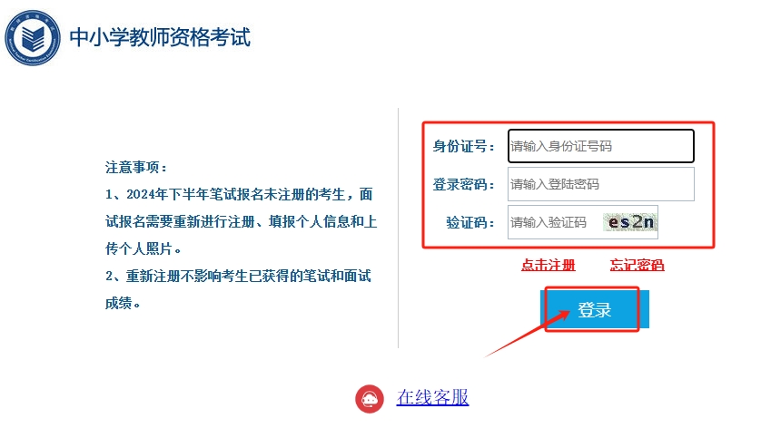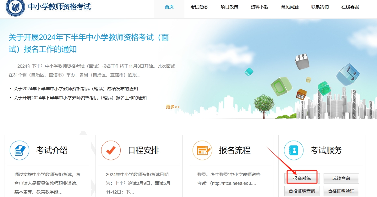 考生在规定时间内登录教育部中小学教师资格考试网ntce.neea.edu.cn