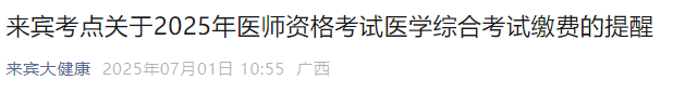 7月6日截止!广西来宾2025年医师资格综合笔试考生速去缴费!以下为考点官方发布的缴费要求,请按时完成笔试缴费,避免影响笔试考试!
